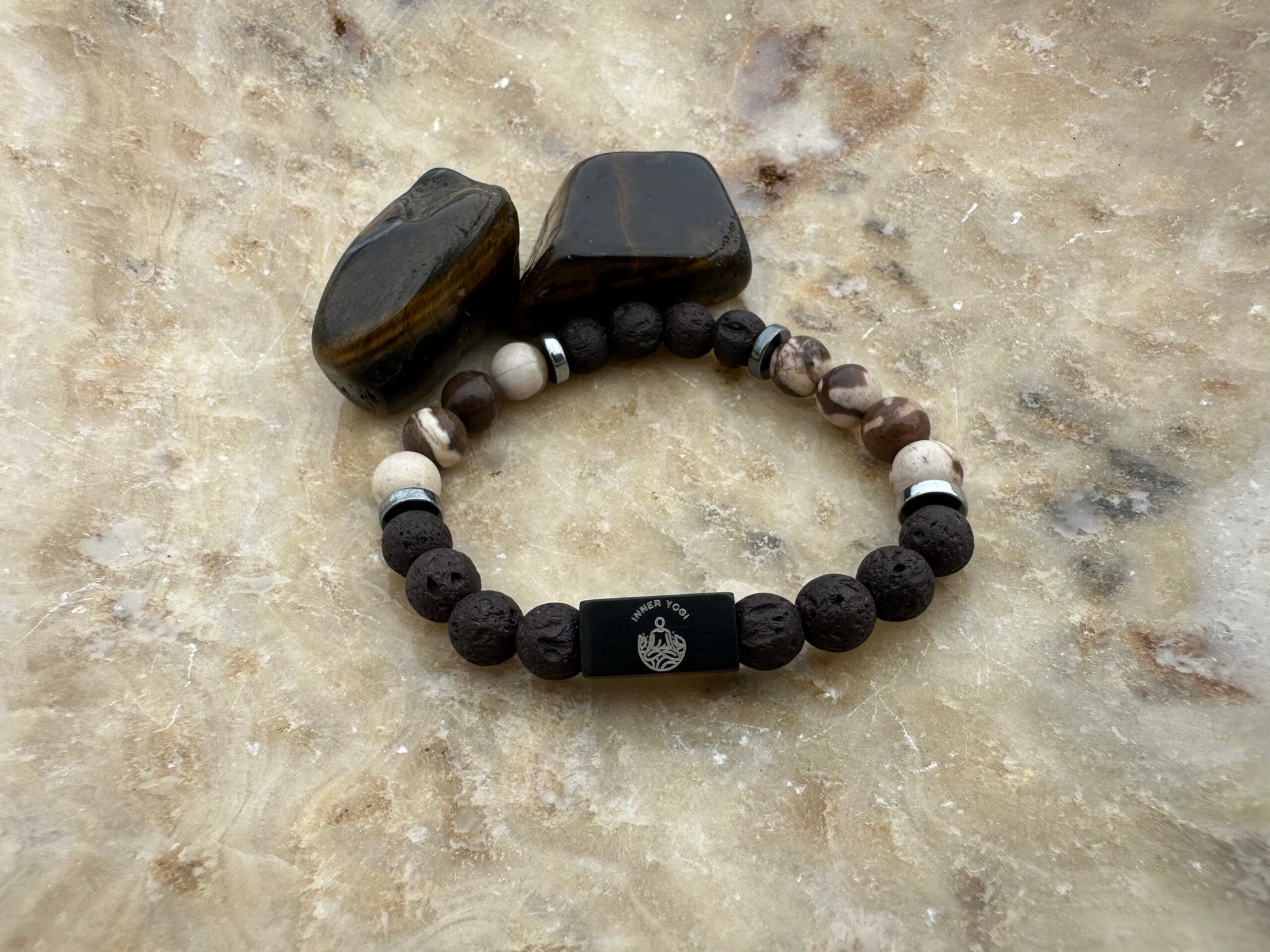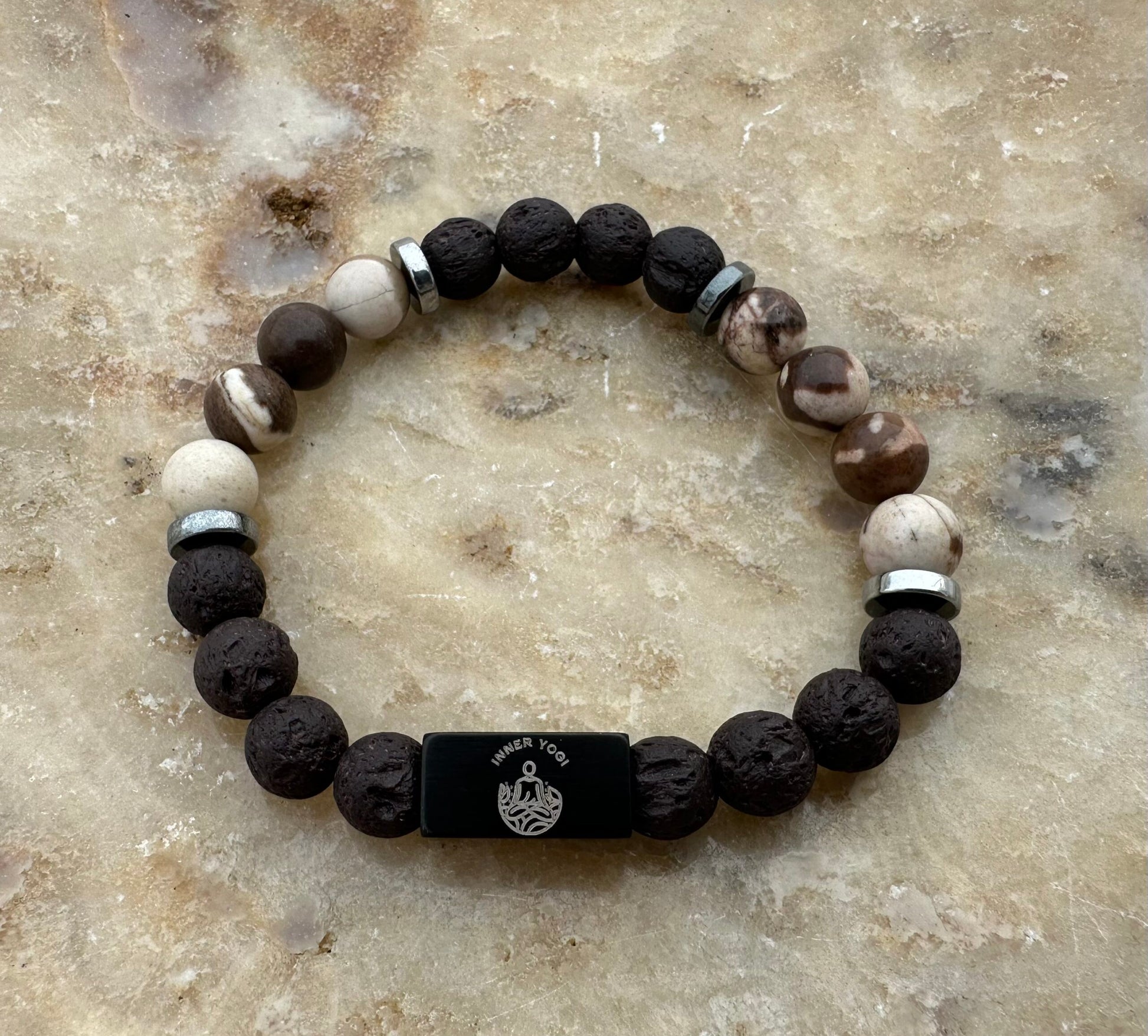 1. **Zebra Stone's Empowering Stripes:** - Zebra Stone brings a dynamic balance of yin and yang energies, empowering you with a harmonious sense of equilibrium. - Fosters a strong connection to the Earth, grounding your energy and instilling a sense of stability and resilience. 2. **Shimmering Lava Stone's Fiery Transformation:** - Lava Stone, born from volcanic fire, symbolizes transformation and renewal. - Absorbs and diffuses essential oils, allowing you to experience aromatherapy benefits for heightened emotional well-being. 3. **Hematite's Grounding Strength:** - Hematite, a steadfast force, grounds your energy, providing stability and enhancing mental focus. - Infuses the bracelet with a protective shield, fostering resilience and empowering you to navigate challenges with strength. 4. **Balancing Yin-Yang Energies:** - The harmonious trio of Zebra Stone, Lava Stone, and Hematite creates a powerful synergy, balancing yin and yang energies within. - Encourages a holistic approach to well-being, aligning mind, body, and spirit for optimal vitality. Designed to last featuring superior quality elastic, 8mm Genuine Semi-Precious stones with stainless steel Inner Yogi Designs logo. Includes Inner Yogi Designs jewelry bag. ***Disclaimer: The information provided on this website about the metaphysical properties and healing powers of crystals is based on belief systems and anecdotal experiences. It is not intended as a substitute for professional medical advice, diagnosis, or treatment. Individuals with health concerns should consult with a qualified healthcare professional. The content on this site is for informational purposes only and should not be considered as medical, financial, or legal advice. Inner Yogi Designs does not guarantee the effectiveness of crystal healing.Share