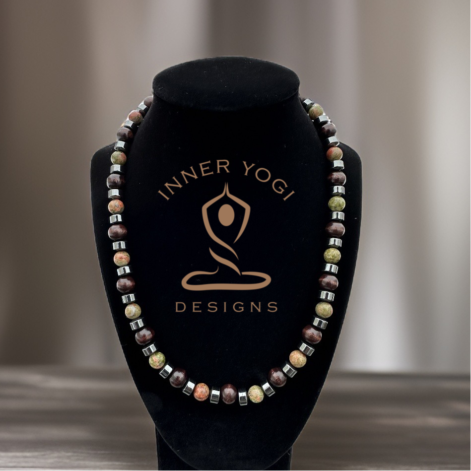 - Mind-Body Alignment: Use the necklace to align your mind and body, fostering a sense of unity and balance. The reflective energy of Hematite can harmonize with your thoughts, while Unakite promotes emotional balance, and Wood connects you to the grounding forces of the earth.