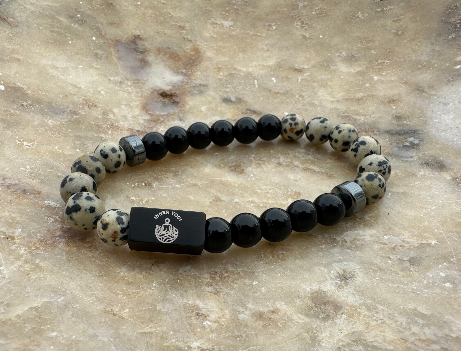 Essence of Empowerment Bracelet: Unleashing Strength with Black Jasper, Dalmatian Jasper, and Hematite