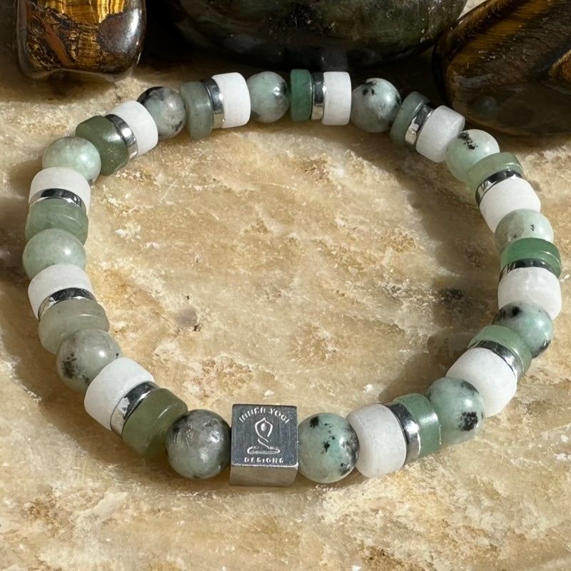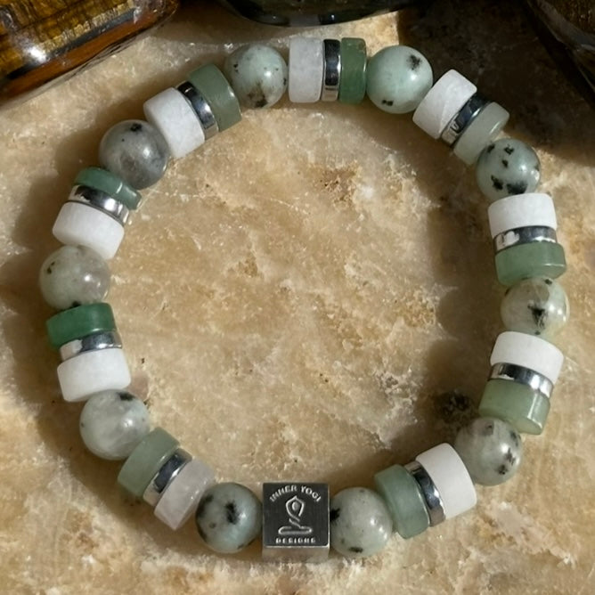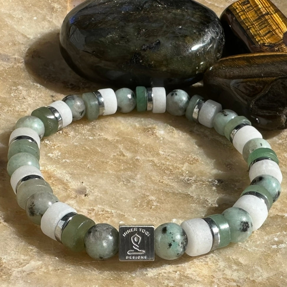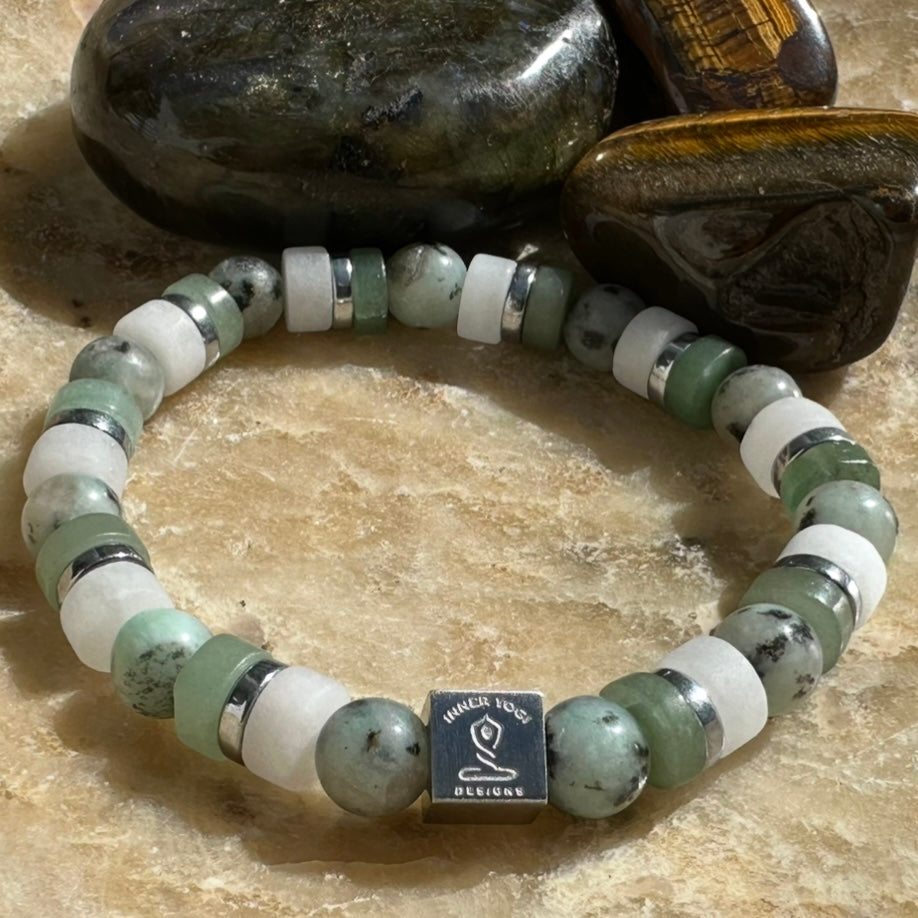 Designed to last featuring superior quality elastic 8mm genuine semi precious stones with stainless steel Inner Yogi Designs logo and jewelry bag.