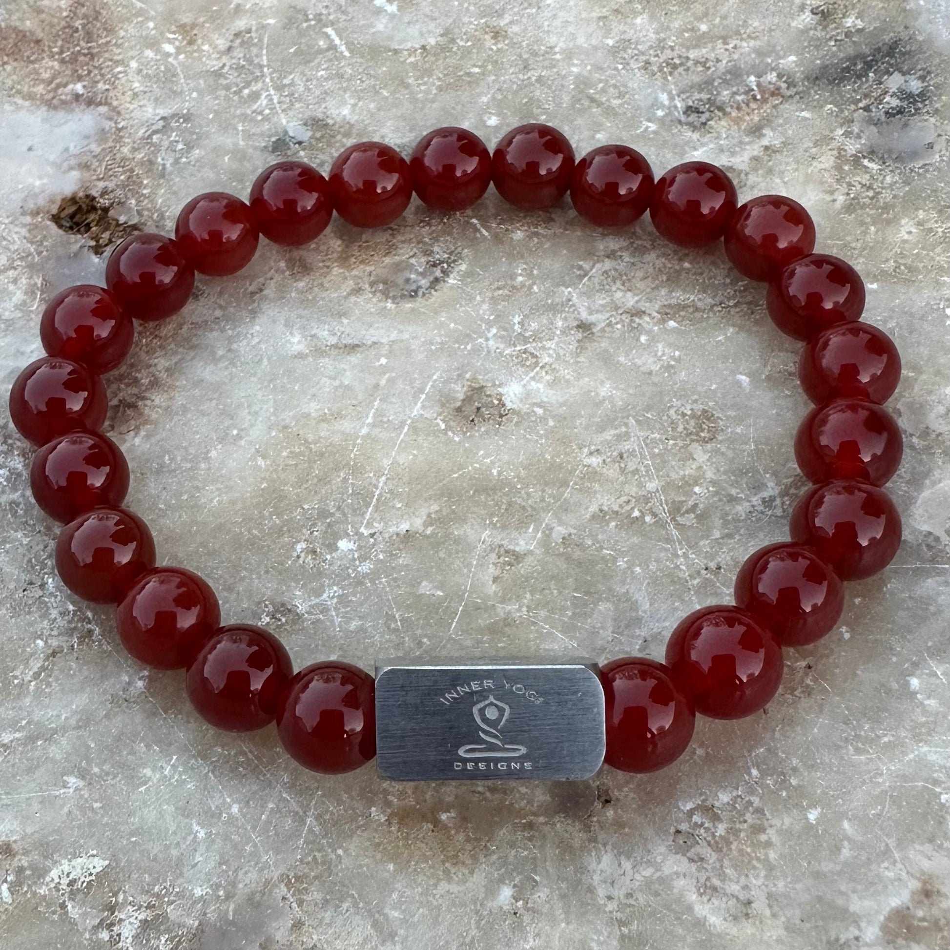 All bracelets are strung on a high quality elastic cord with an 8mm Inner Yogi Designs logo bead is stainless steel. Bracelets may vary slightly due to stones uniqueness.