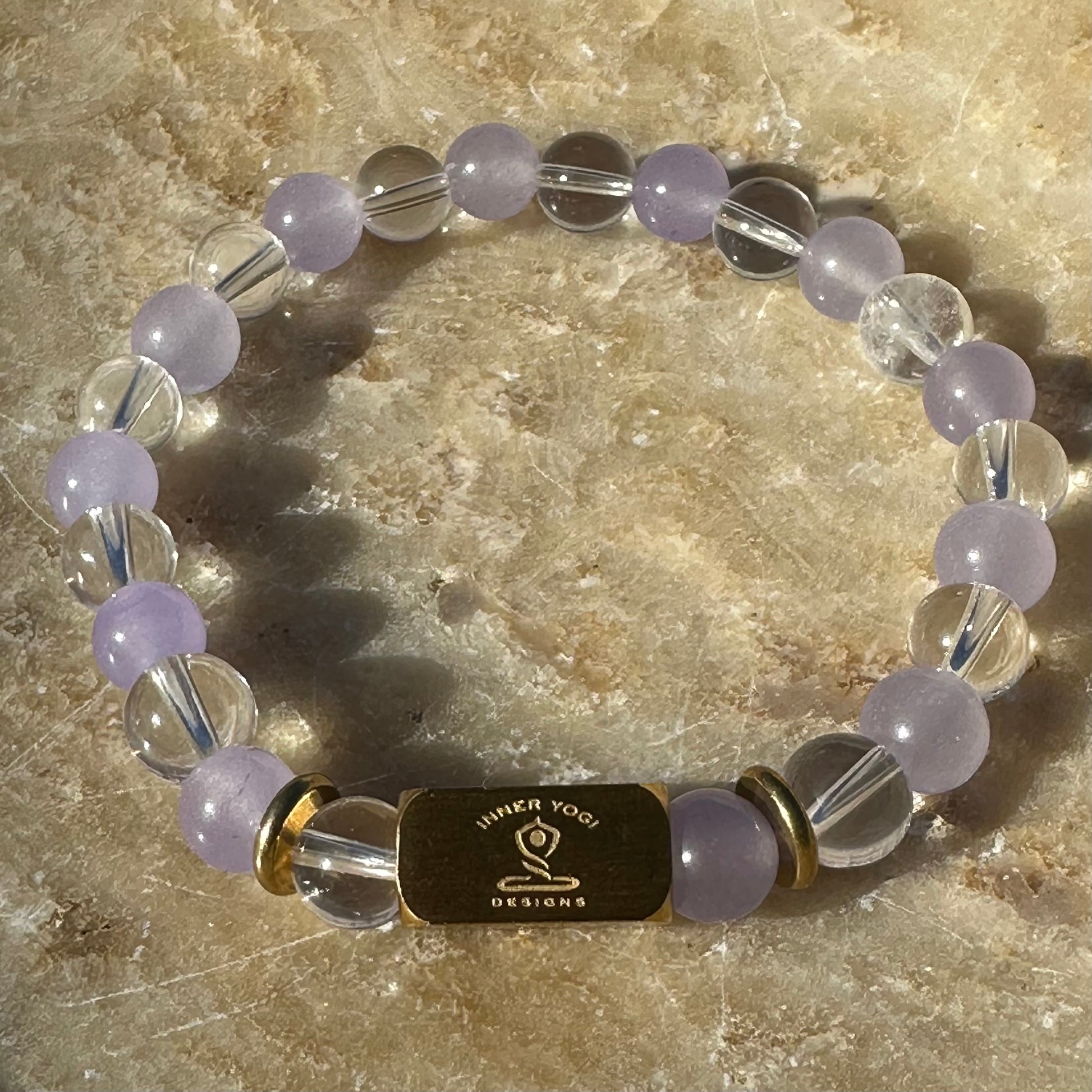 This design features rose quartz and clear quartz beads with a brass focal bar and an Inner Yogi Designs stainless steel logo bead. Stones may vary slightly in color and pattern due to the uniqueness of each stone. All bracelets are strung on a high quality elastic cord with an 8mm Inner Yogi Designs logo bead is stainless steel.